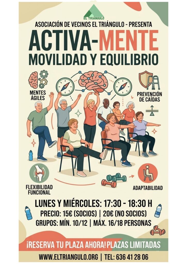 En la Asociación de Vecinos El Triángulo, sabemos que mantenernos ágiles no es solo una cuestión de ejercicio, sino de calidad de vida. Por eso, para el próximo curso 2026-2027, lanzamos el taller Activa-Mente: Movilidad y Equilibrio.