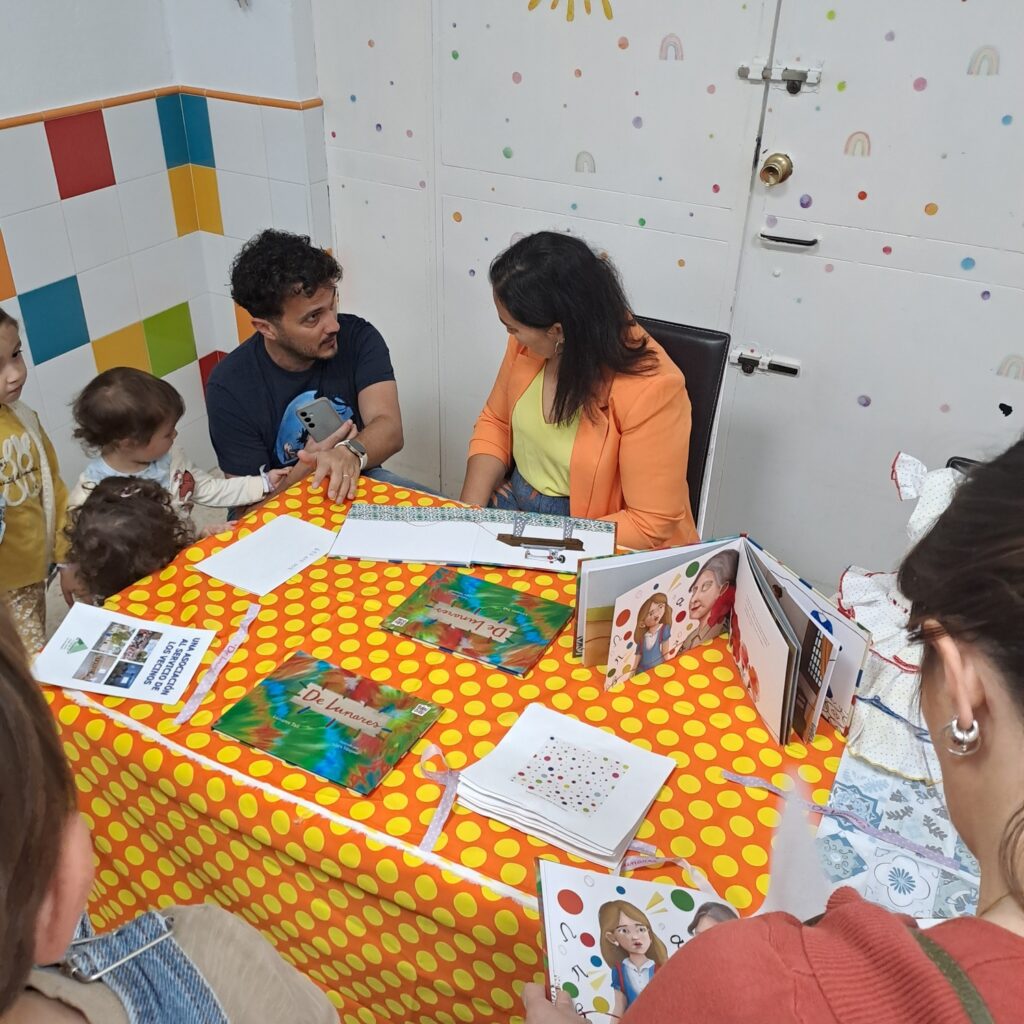 Hay mañanas que se quedan guardadas en la memoria del barrio, y la del pasado sábado 11 de abril fue, sin duda, una de ellas. Nuestro local social se transformó en un rincón lleno de color y emoción para recibir a Lunares Talí, que vino a presentarnos su cuento «De lunares».